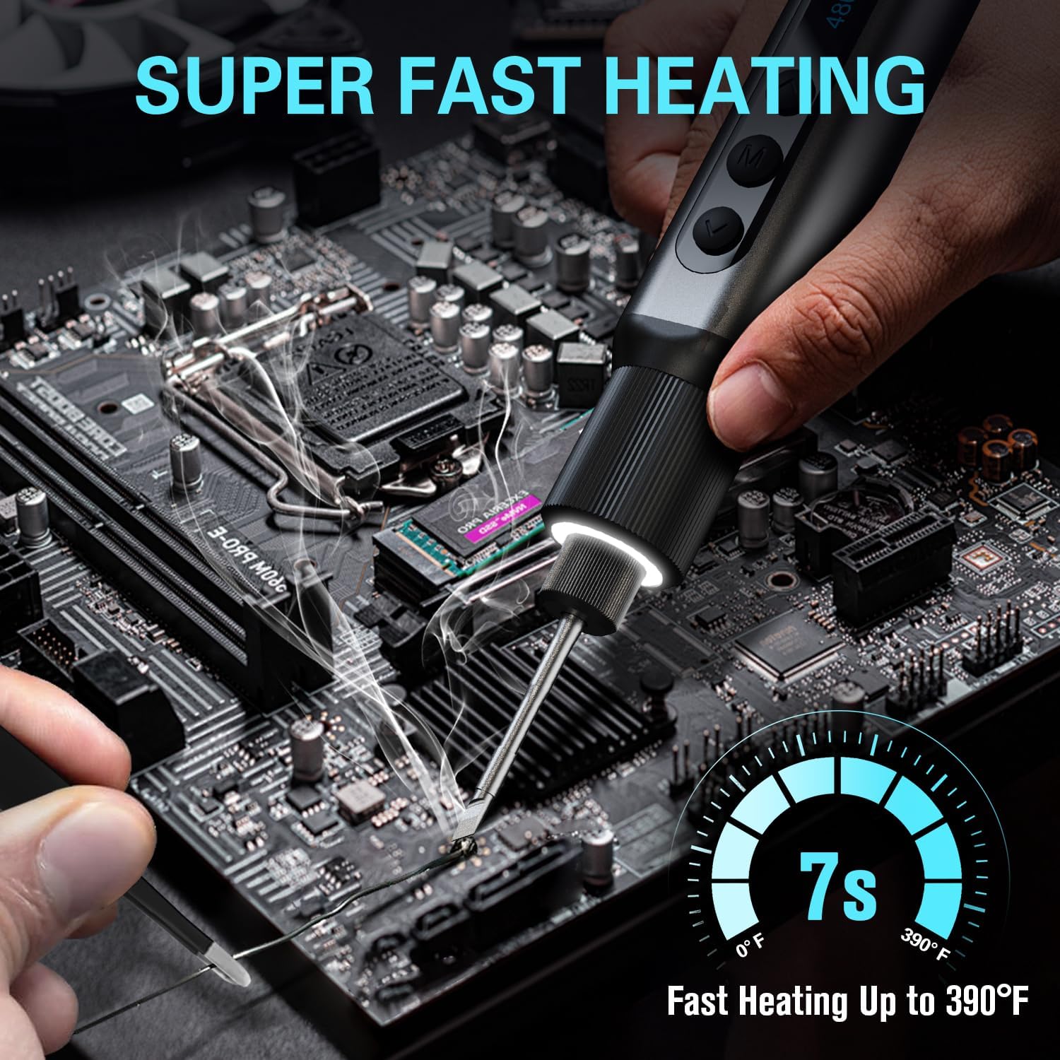 - 🎛️ 6-Level Precision Temp Control Easily dial in the perfect heat. The intuitive tail knob lets you switch between 6 temperature levels ranging from 390°F to 840°F (200°C to 450°C). This precise control ensures you get the perfect melt without damaging delicate, heat-sensitive circuit board components.