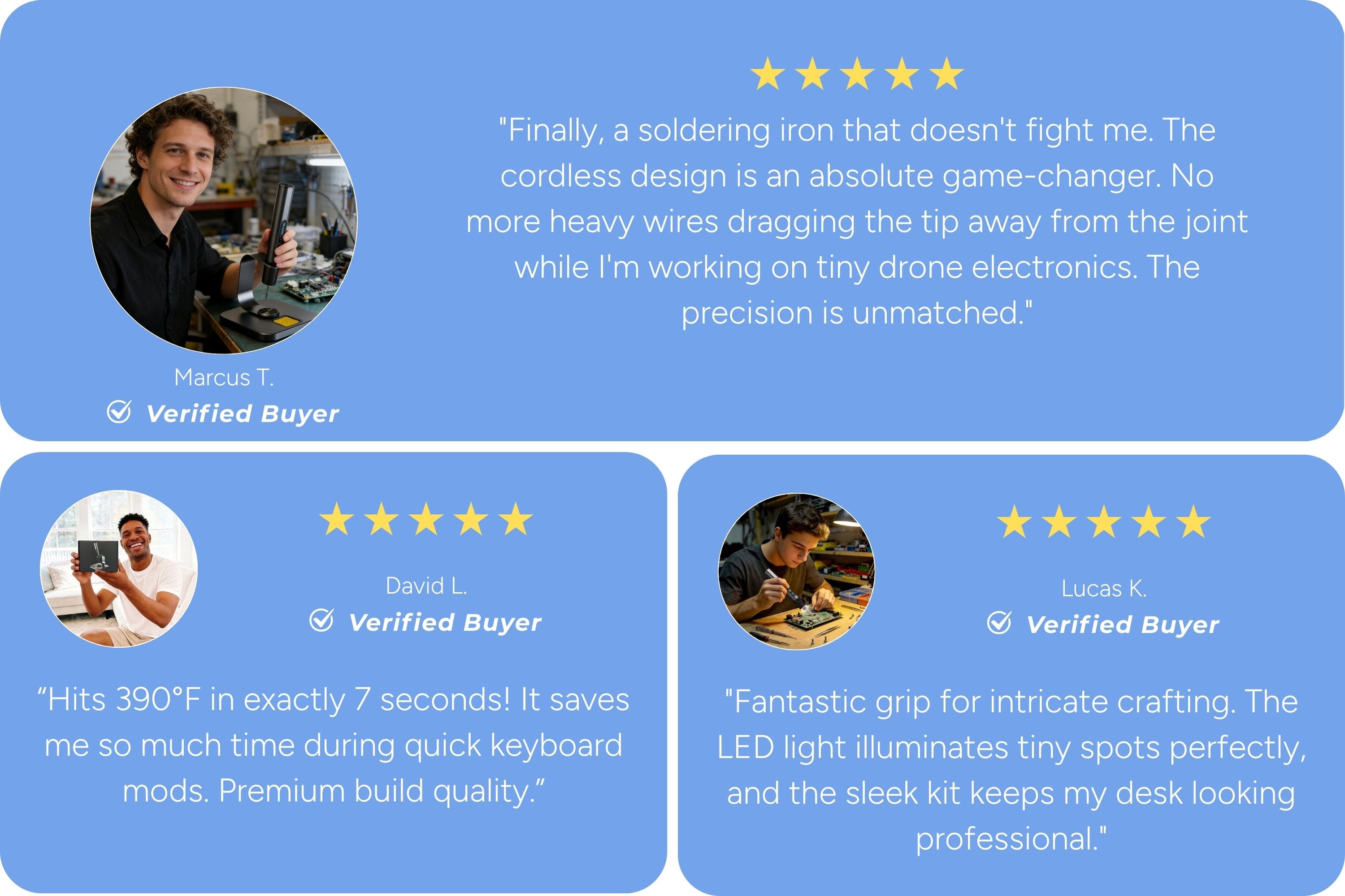 The Ultimate Tool for Precision and Portability Say goodbye to restrictive cables and endless waiting. Designed for engineers, tinkerers, and DIY enthusiasts, the Haninula Smart Cordless Soldering Iron combines industrial-grade performance with ultimate freedom, making every precision repair effortless.